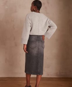 We love this skirt for its elegance and simplicity. The small front slit adds a touch of sophistication, making this piece perfect for any occasion.