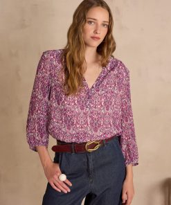 Maison 123 Women’s Brunette Blouse With Arabesque Print | Dark Fuchsia