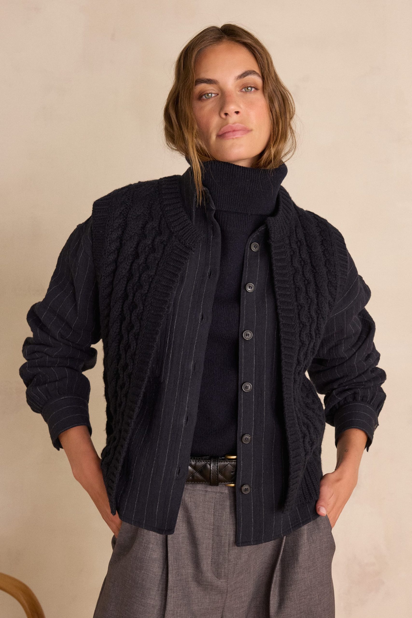 CARMEN is 1m72 tall and wears a size S. With the Celestin jumper, the model wears the CLARA shirt and DAISY trousers.This model fits true to size