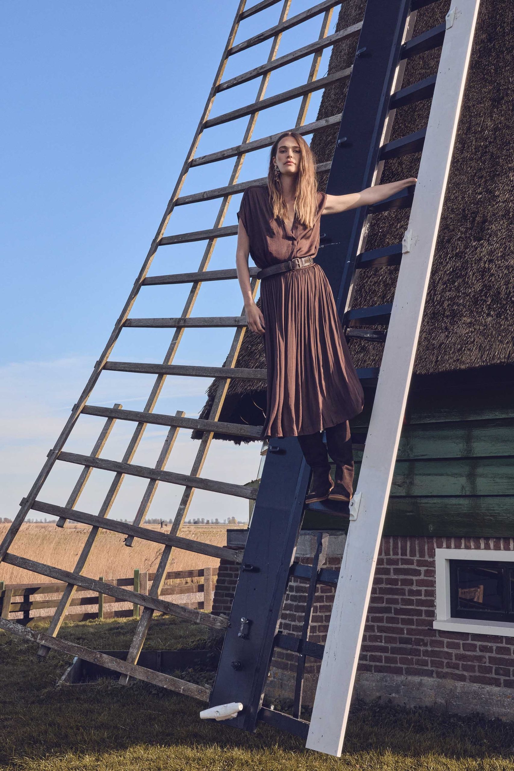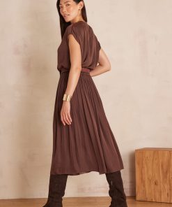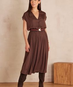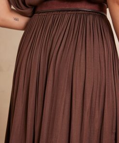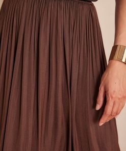 Maison 123 Women’s Crystal Pleated Skirt | Chocolate