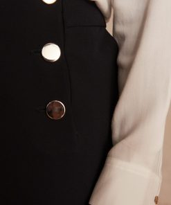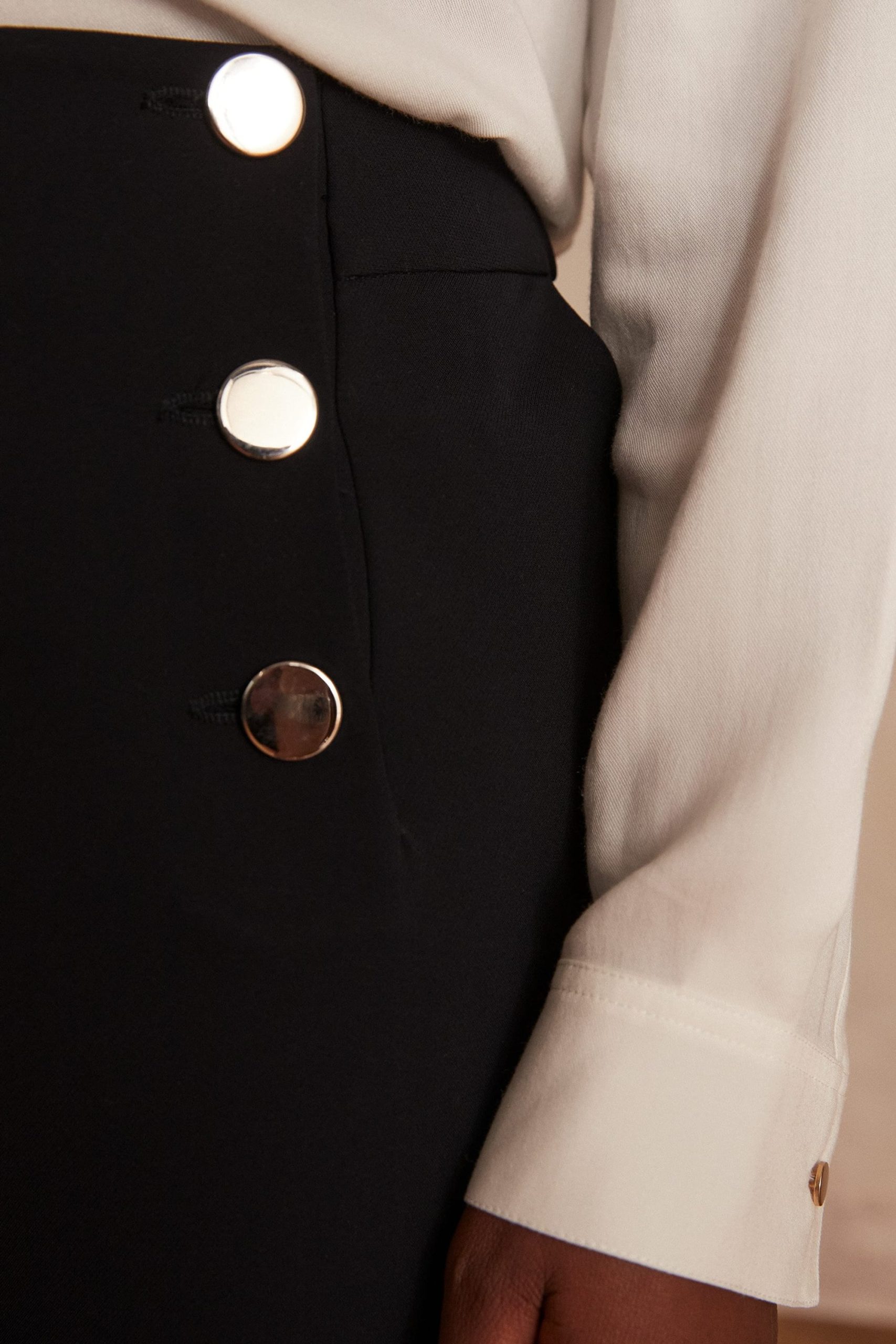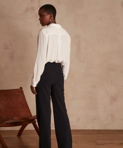 They have a flattering wide-legged shape, pretty metal buttons in classic sailor style and a high waist that highlights your curves. A nice change from classic straight-leg trousers, theirs is a very modern, almost retro look.