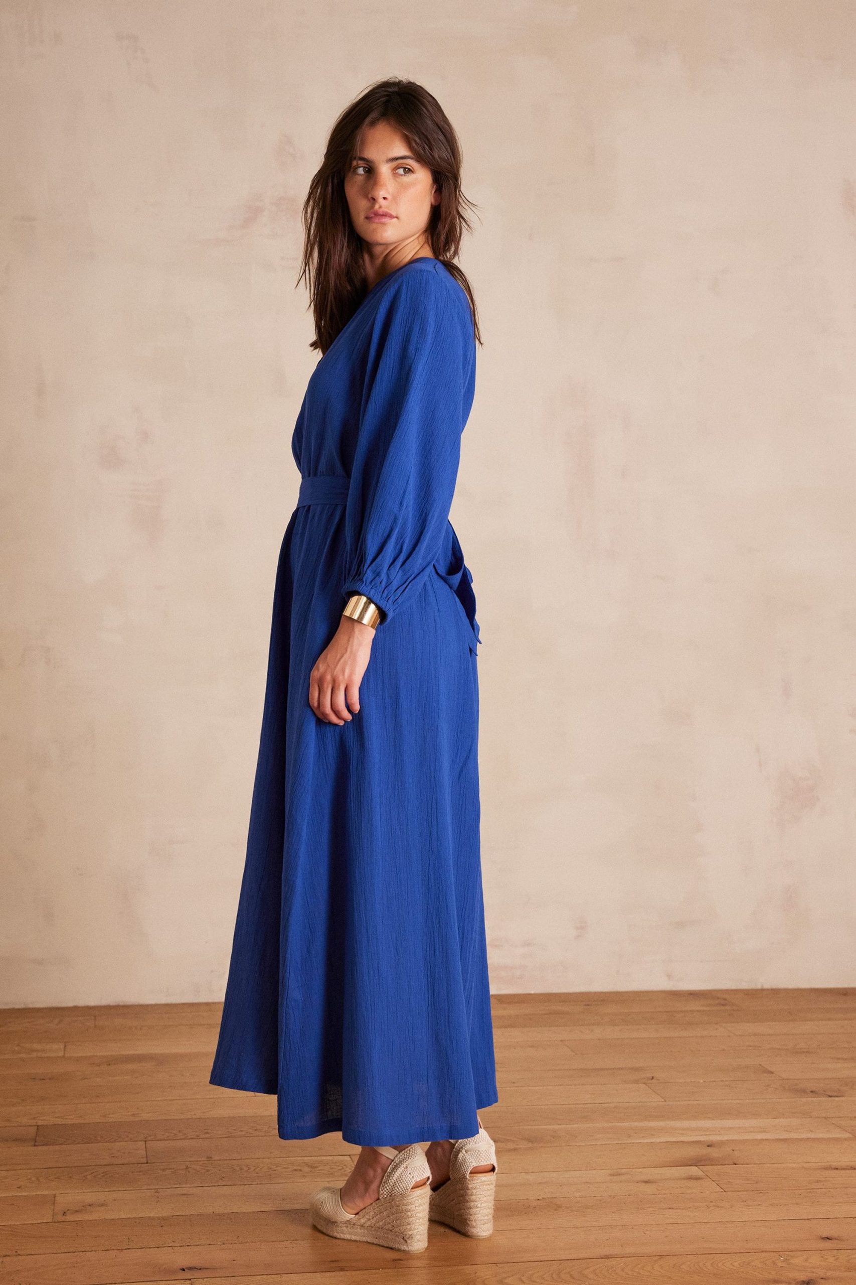 Prune is 1m70 tall and wears size 34. With the MIRANA dress, the model wears MARINA espadrilles.