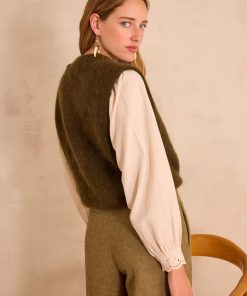 LOUISE is 1.75m tall and wears a size S. With the LOULOU cardigan, the model wears the SENNA blouse, MAXENCE trousers and the FIERCE jacket.This model fits true to size