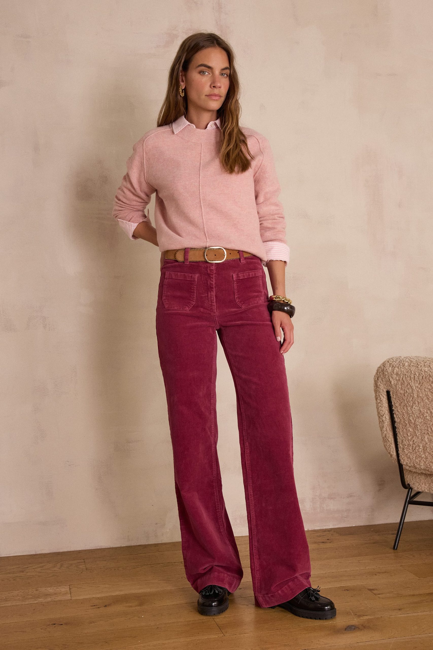 Dare to wear coloured velvet by pairing these trousers with a cream or camel jumper to soften the look, or play with tone-on-tone by wearing a top in shades of pink for a bold and warm style.