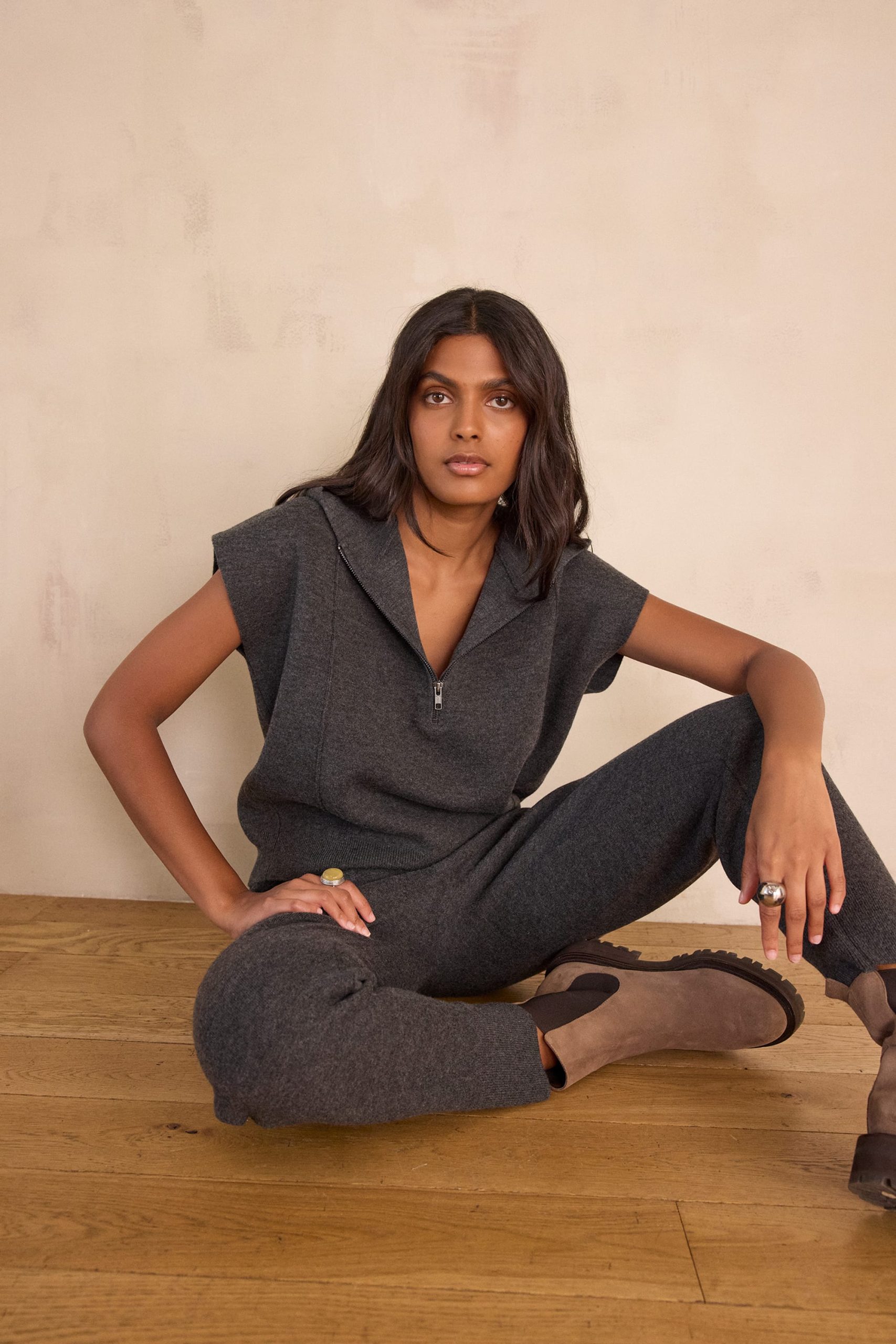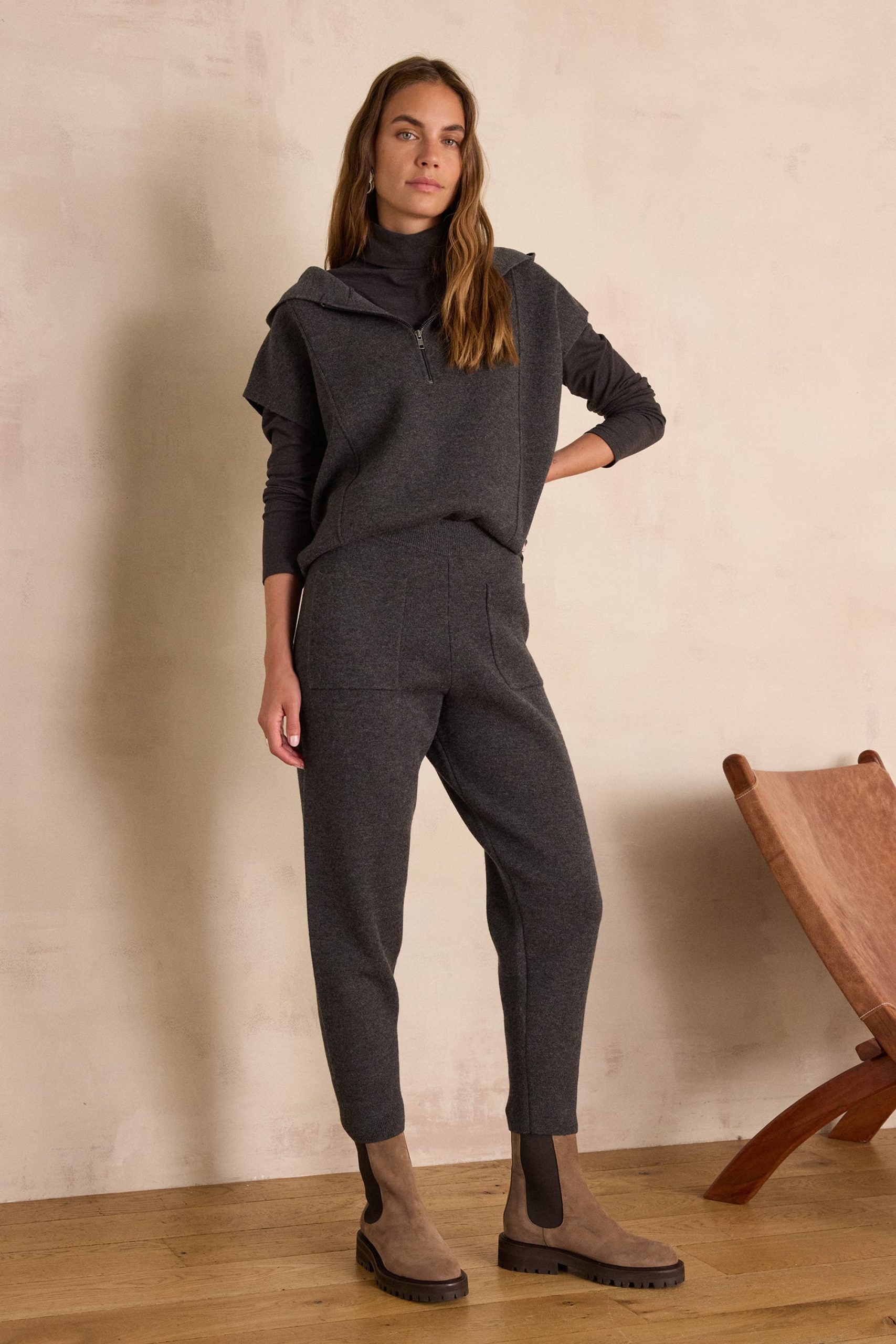 CARMEN is 1.72m tall and wears a size 36. With the MARGOT trousers, the model wears the FERGUIE t-shirt and the BERY jumper.This model fits true to size