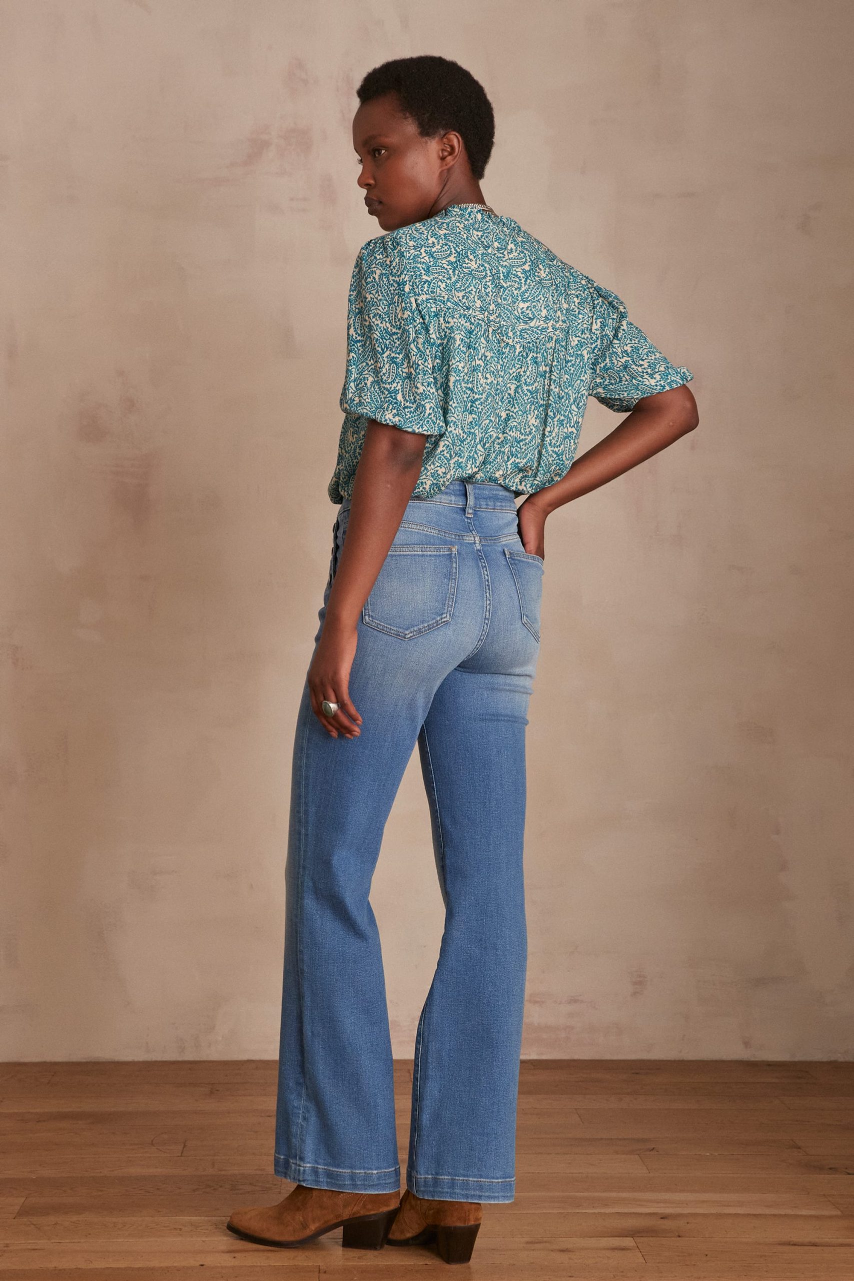 Seventies vibes for the NINON flared jeans with a sailor trousers look.