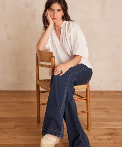 Prune is 1m70 tall and wears size 34. With the SACHA blouse, the model wears LUNA jeans and MARINA espadrilles.