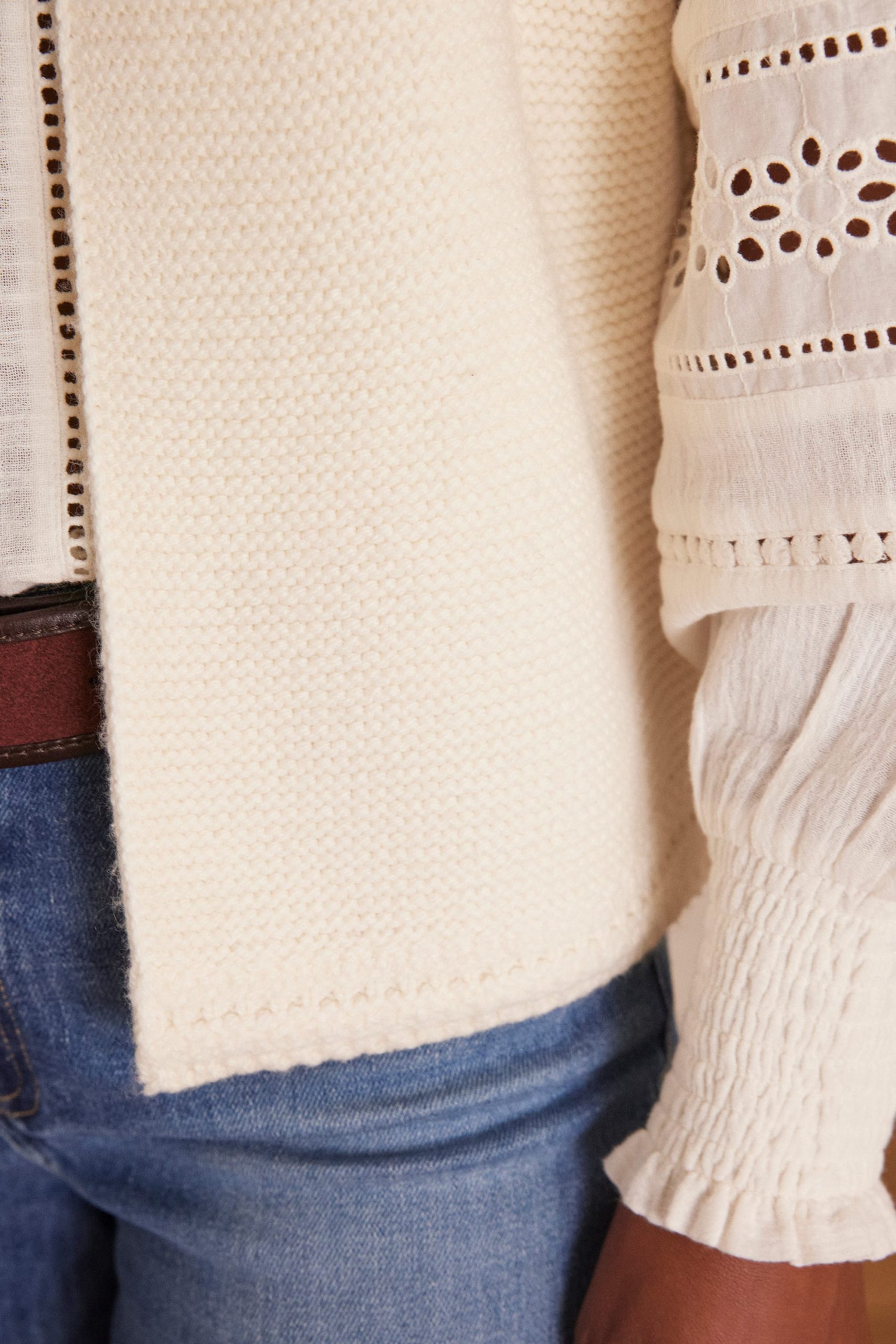 Aliane is 1.75m tall and wears a size 36. With the SONNY cardigan, the model wears SANDY jeans and the BAILA blouse.